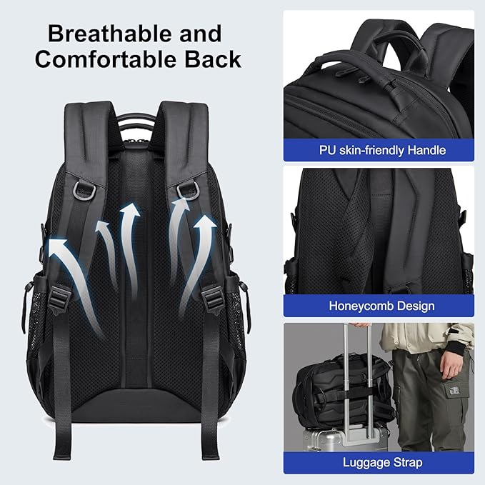 - [Great Casual Backpack with Luggage Strap]— A Luggage belt design on the back of the book bag helps to free your hand and back by fixing the laptop bag on the trolley of your luggage, will make your traveling more convenient.